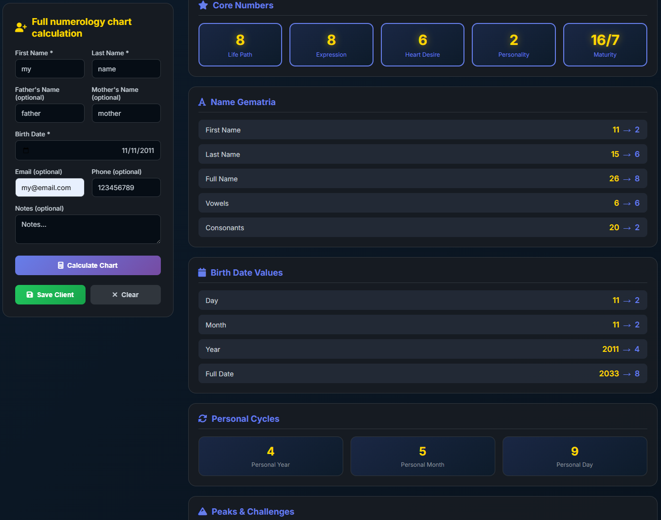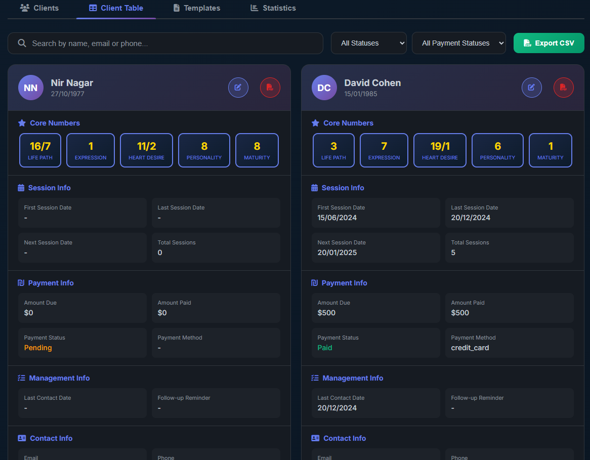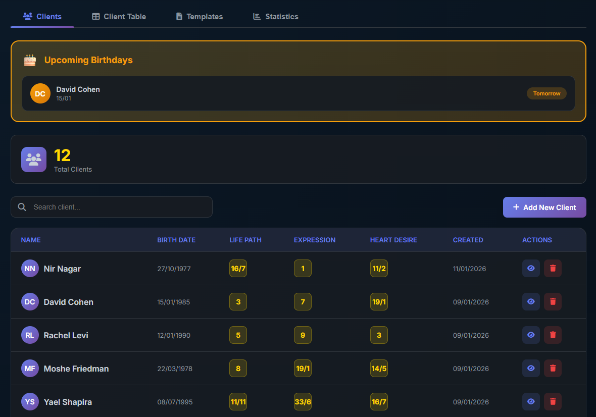 A built-in numerology calculator + pro client management