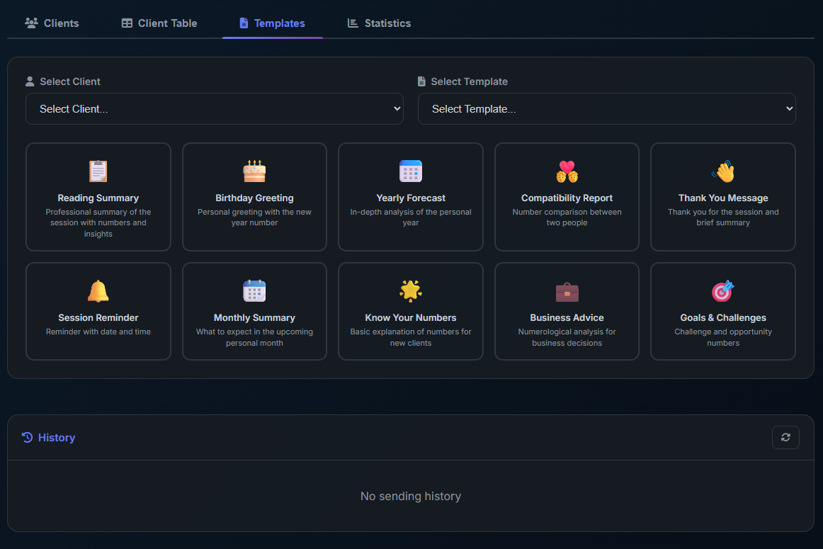 - Ready-made templates + stats in one place